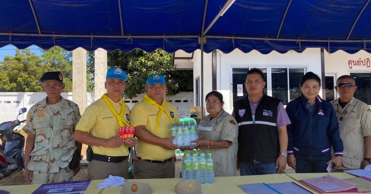 – เวลาประมาณ ๑๑.๐๐ น. ร่วมกับเจ้าหน้าที่ ปฏิบัติหน้าที่ที่จุดอำนวยการ การจราจรร่วมฝ่ายปกครองตำรวจ,เจ้าหน้าที่บรรเทาสาธารณภัยฝ่ายพลเรือน ดังนี้ เจ้าหน้าที่ตำรวจ จำนวน ๓ นาย, ฝ่ายปกครองจำนวน ๑ นาย อาสาป้องกันบรรเทาสาธารณภัย จำนวน ๕ นาย และได้ มอบน้ำดื่มให้กับเจ้าหน้าที่ จำนวน ๒๐ แพ็ค