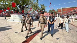 (31 ธันวาคม 2567) เวลา 13.00 น. ว่าที่ พ.ต.อ.ยุทธสิทธิ์ บุญกล่ำ ผกก.3 บก.ทท.2 พร้อมสายตรวจ ตรวจเยี่ยมจุดบริการนักท่องเที่ยววัดพระศรีรัตนมหาธาตุ วรทหาวิหาร ชี้เเจ้งข้อราชการเเนวทางการปฏิบัติหน้าที่อำนวยความสะดวกและรักษาความปลอดภัยให้นักท่องเที่ยวและประชาชน ช่วงเทศกาลปีใหม่ 2568 พร้อมทั้งออกเดินแนะนำ ประชาสัมพันธ์ แอปพลิเคชัน “Thailand Tourist Police Application” ให้กับนักท่องเที่ยวและประชาชนที่มาท่องเที่ยว ได้ดาวน์โหลดไว้ในอุปกรณ์โทรศัพท์มือถือ