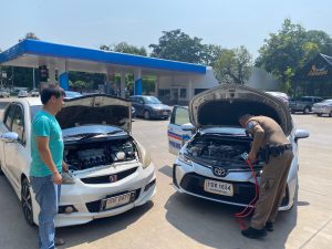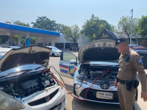 ว.4 ให้การช่วยเหลือประชาชน รถยนต์สตาร์ทไม่ติดแบตเตอรี่หมด เจ้าหน้าที่ได้ดำเนินการช่วยเหลือพ่วงแบตเตอรี่ให้ จึงสามารถเดินทางต่อได้