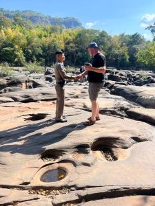 พบนายมงคล ทัศษ์วงษ์ ผู้ใหญ่บ้านหมู่ 6 ให้ข้อมูลเกี่ยวกับสถานที่ท่องเที่ยงพร้อมแจ้งจุดเสี่ยง และให้คำแนะนำนักท่องเที่ยวตามจุดต่างๆ