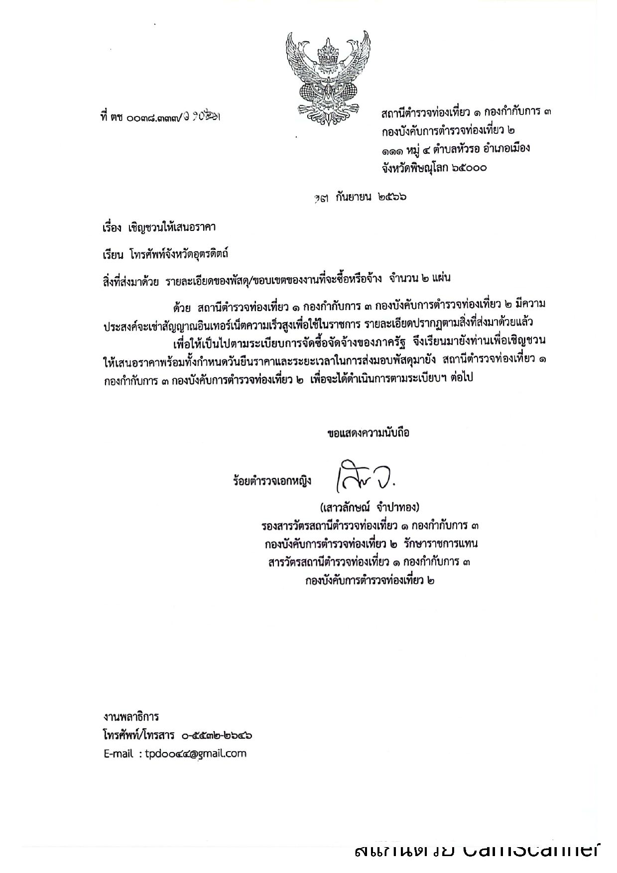 เชิญชวนเสนอราคา สำหรับการเช่าสัญญาณอินเทอร์เน็ต ส.ทท.1 กก.3 บก.ทท.2 (ตู้บริการนักท่องเที่ยว จว.อุตรดิตถ์) ประจำปีงบประมาณ พ.ศ.2567 (ต.ค.-ธ.ค.66) 13 เมษายน 2566 โดย admin