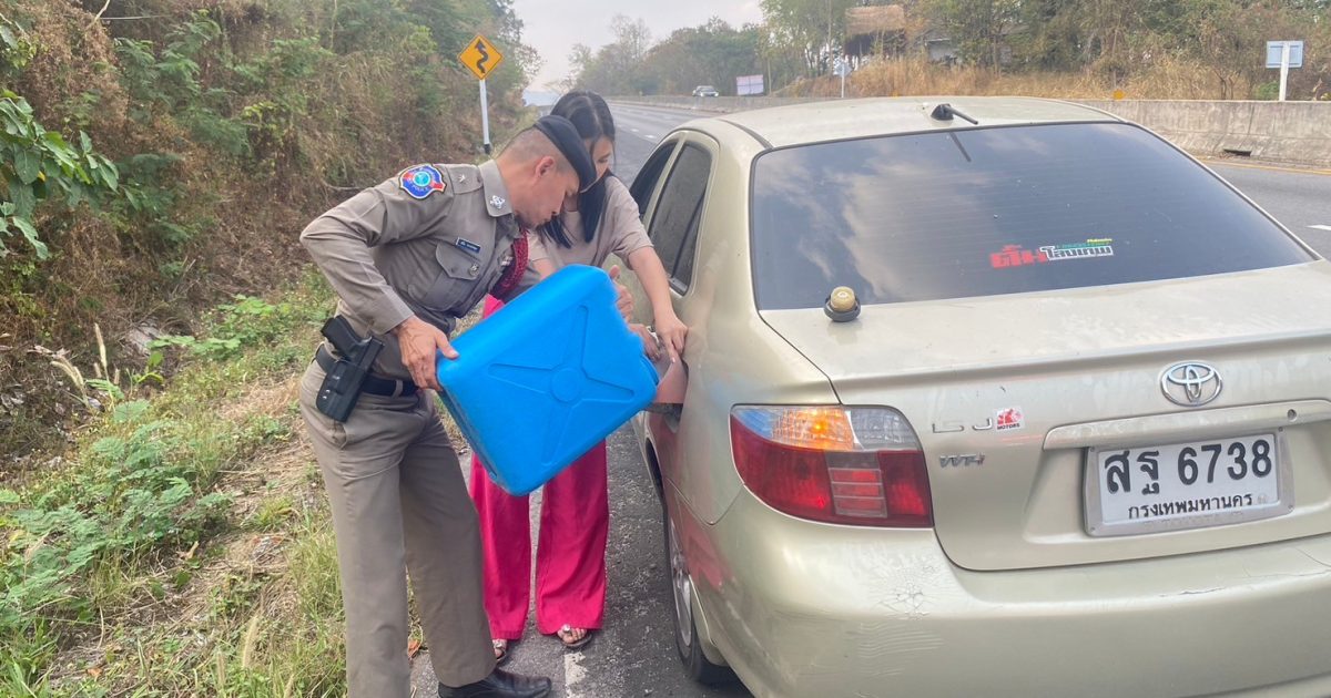 ได้รับแจ้งจาก น.ส.พรชิตา จันทร์คำ 06 6096xxx รถยนต์เก๋งวีอ๊อด สีทอง หมายเลขทะเบียน สฐ 6738 กทม. น้ำมันหมด บริเวณ กม.240 ถนนหมายเลข 12 ทางขึ้นเขาค้อ จึงให้การช่วยเหลือจัดหาน้ำมันมาเติมให้ จนสามารถเดินทางต่อไปได้
