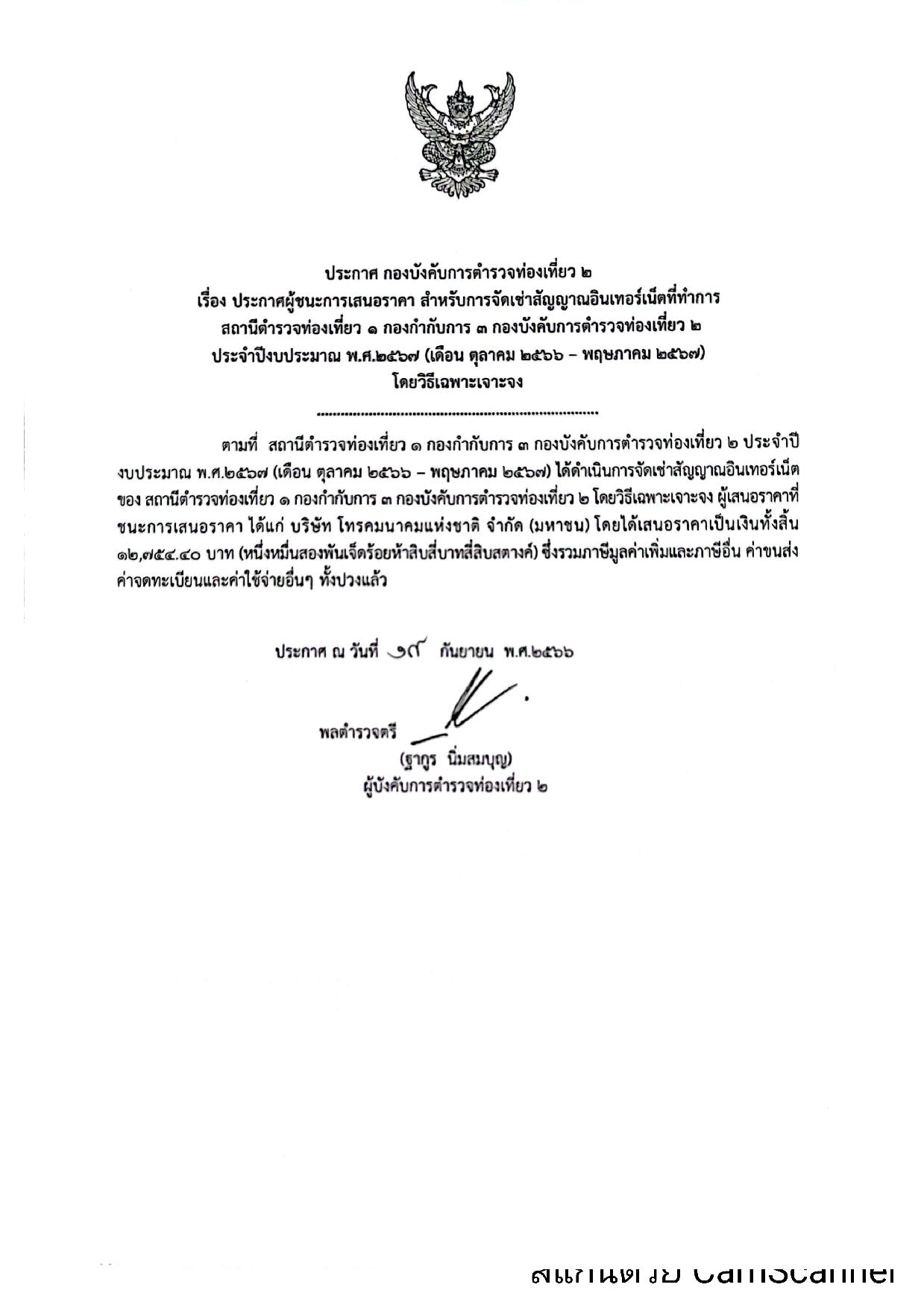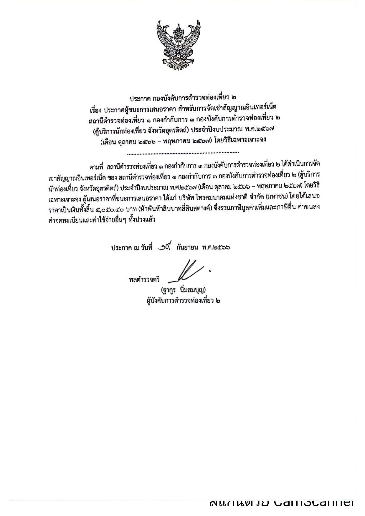 ประกาศผู้ชนะการเสนอราคา สำหรับการจัดเช่าสัญญาณอินเทอร์เน็ต ส.ทท.1 กก.3 บก.ทท.2 (ตู้บริการนักท่องเที่ยว จว.อุตรดิตถ์) ประจำปีงบประมาณ พ.ศ.2567 (เดือน ต.ค.66-พ.ค.67) โดยวิธีเฉพาะเจาะจง 19 กันยายน 2566 โดย admin
