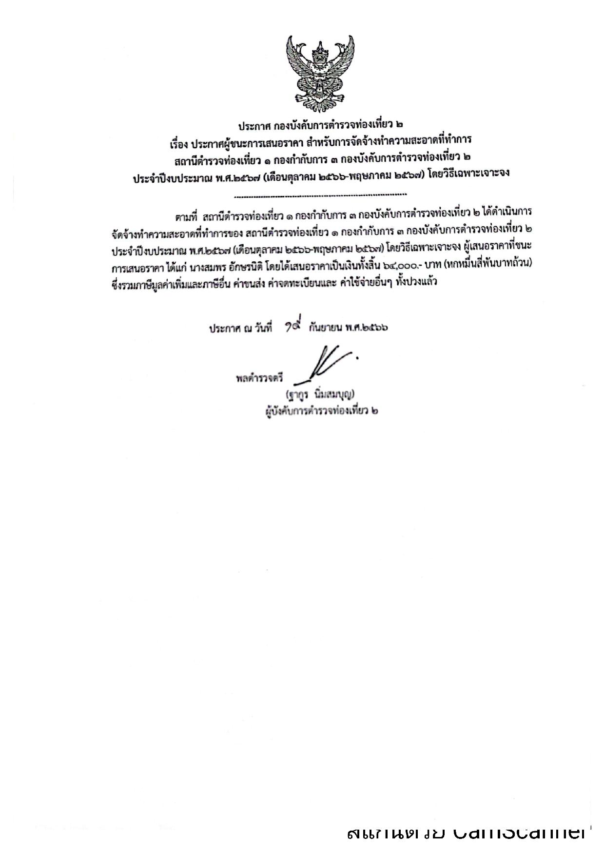 ประกาศผู้ชนะการเสนอราคา สำหรับการจัดจ้างทำความสะอาดที่ทำการ ส.ทท.1 กก.3 บก.ทท.2 19 กันยายน 2566 โดย admin