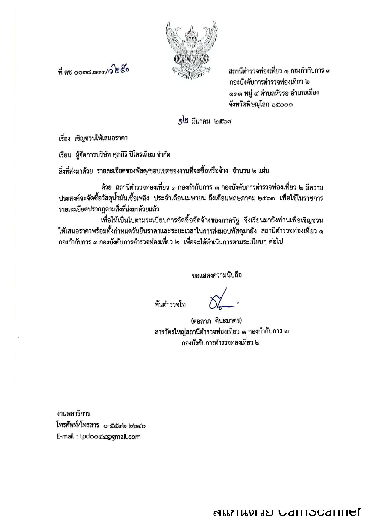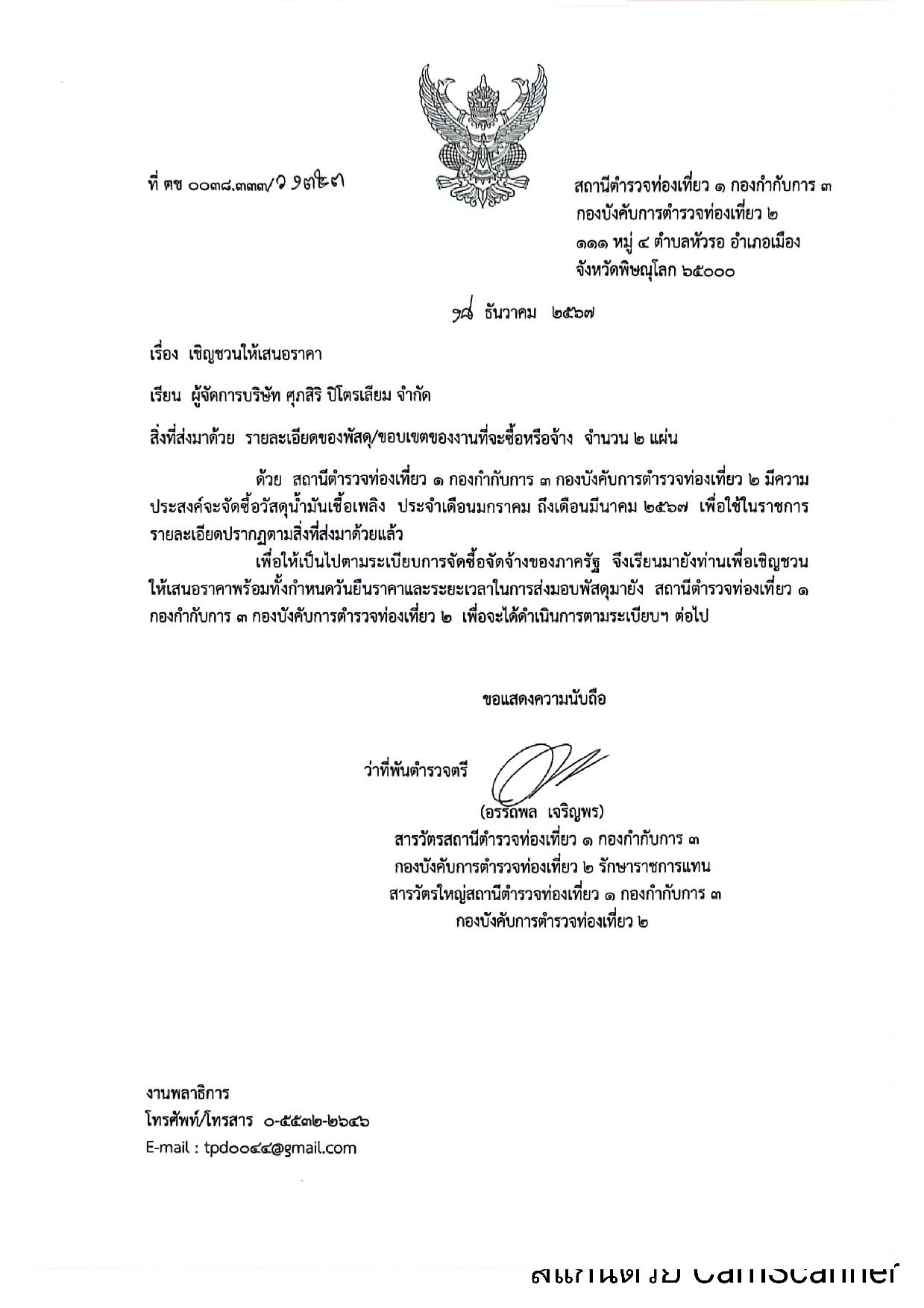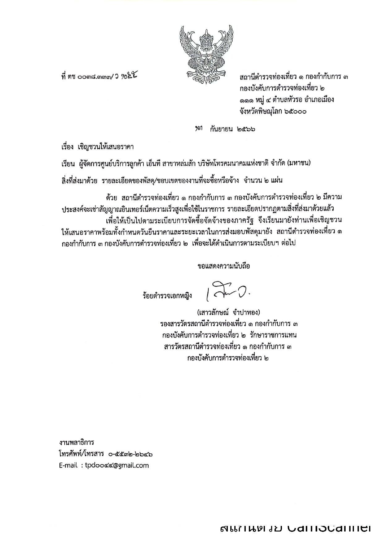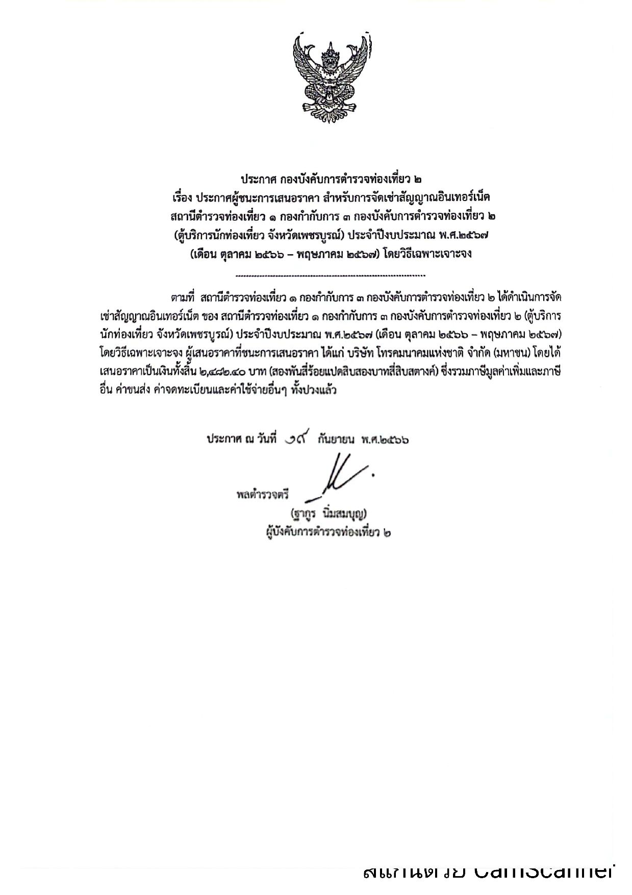 เชิญชวนเสนอราคา สำหรับการเช่าสัญญาณอินเทอร์เน็ต ส.ทท.1 กก.3 บก.ทท.2 (ตู้บริการนักท่องเที่ยว จว.เพชรบูรณ์) ประจำปีงบประมาณ พ.ศ.2567 (ต.ค.-ธ.ค.66) 13 กันยายน 2567 โดย admin