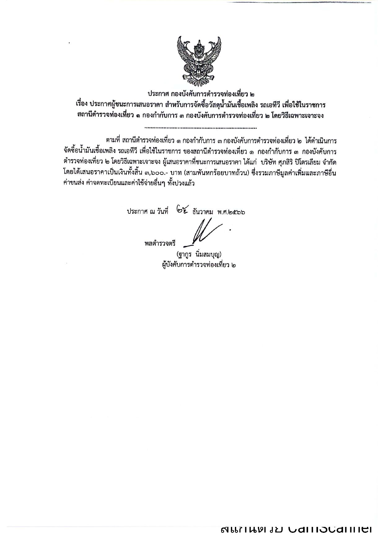 ประกาศผู้ชนะการเสนอราคา สำหรับการจัดซื้อวัสดุน้ำมันเชื้อเพลิง รถเอทีวี เพื่อใช้ในราชการ ม.ค.-มี.ค.67 25 ธันวาคม 2566 โดย admin